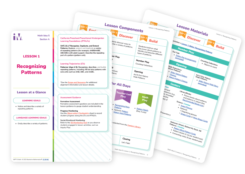 Illustrative Mathematics developed a new offering for Transitional Kindergarten, adding to their wide range of products for K-12. I was hired as a graphic design contractor to create templates for curriculum materials and illustrate digital resources. I worked closely with writers and instructional designers to bring their ideas to life. I made sure every design fit the brand, supported accessibility, and matched the tone of the lessons. I optimized my designs for both print and digital formats, delivering clean, organized files in InDesign, Illustrator, and Photoshop.