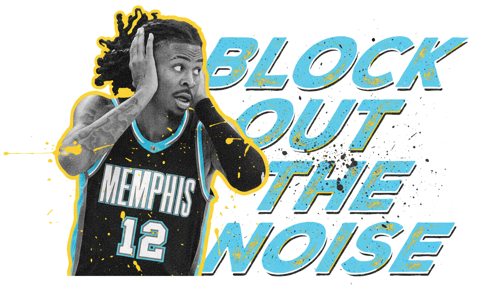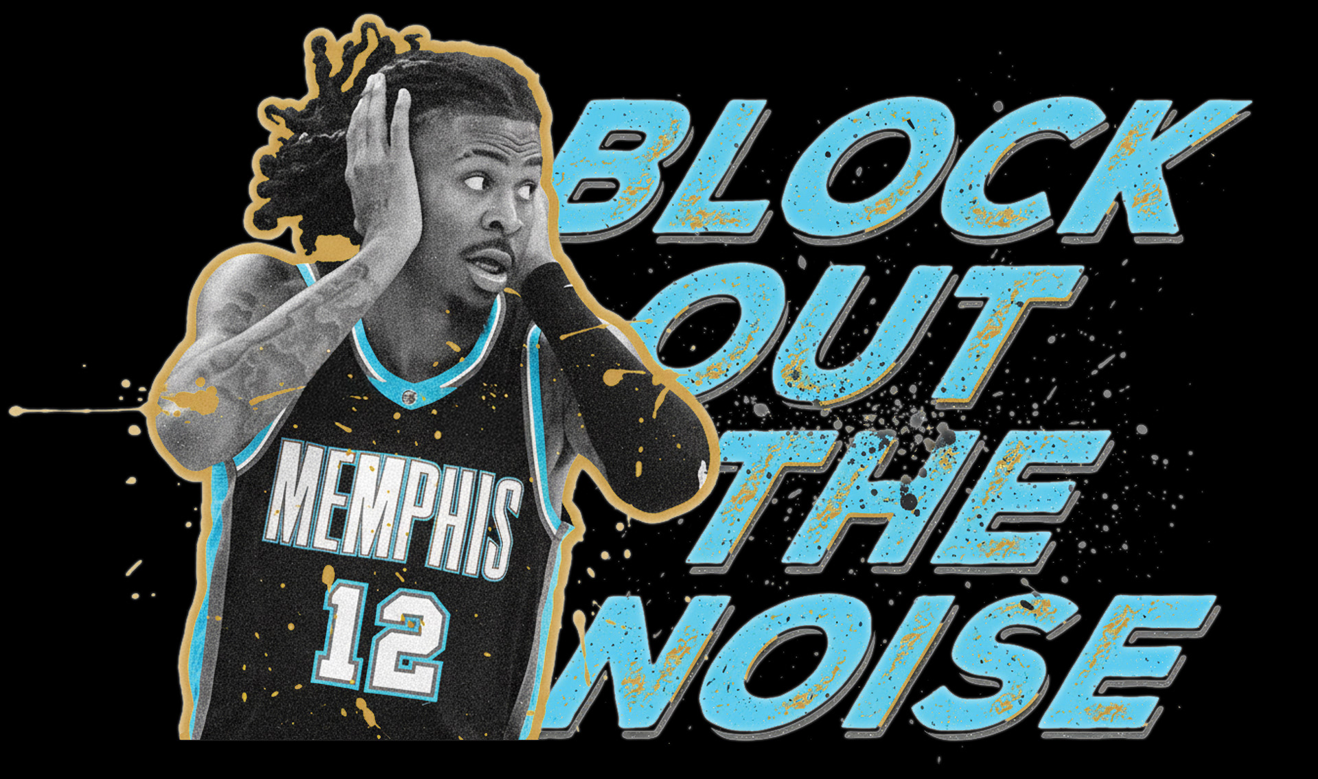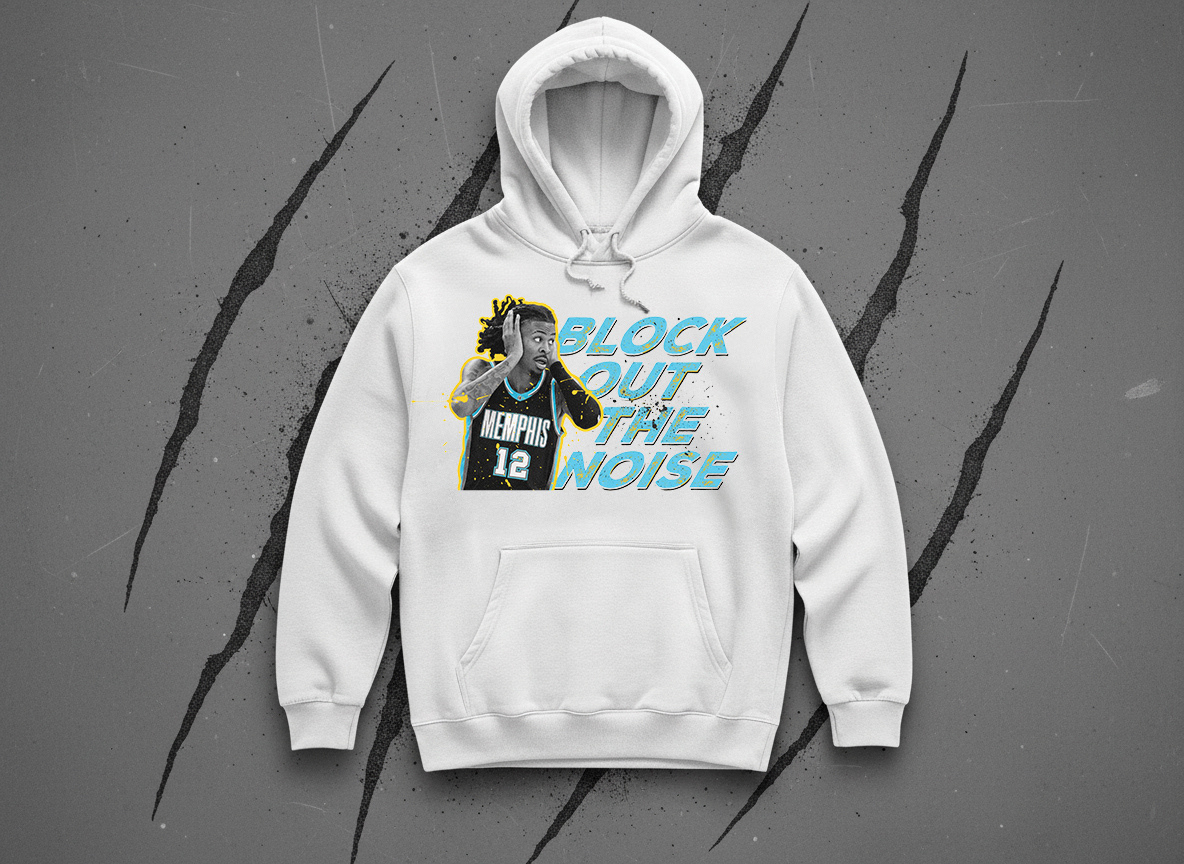 Ja Morant is the biggest star Memphis has ever seen. His style is undeniable! I wanted to come up with a concept that reflected his mood lately: Block Out The Noise! I experimented with a few different colorways and product mockups.